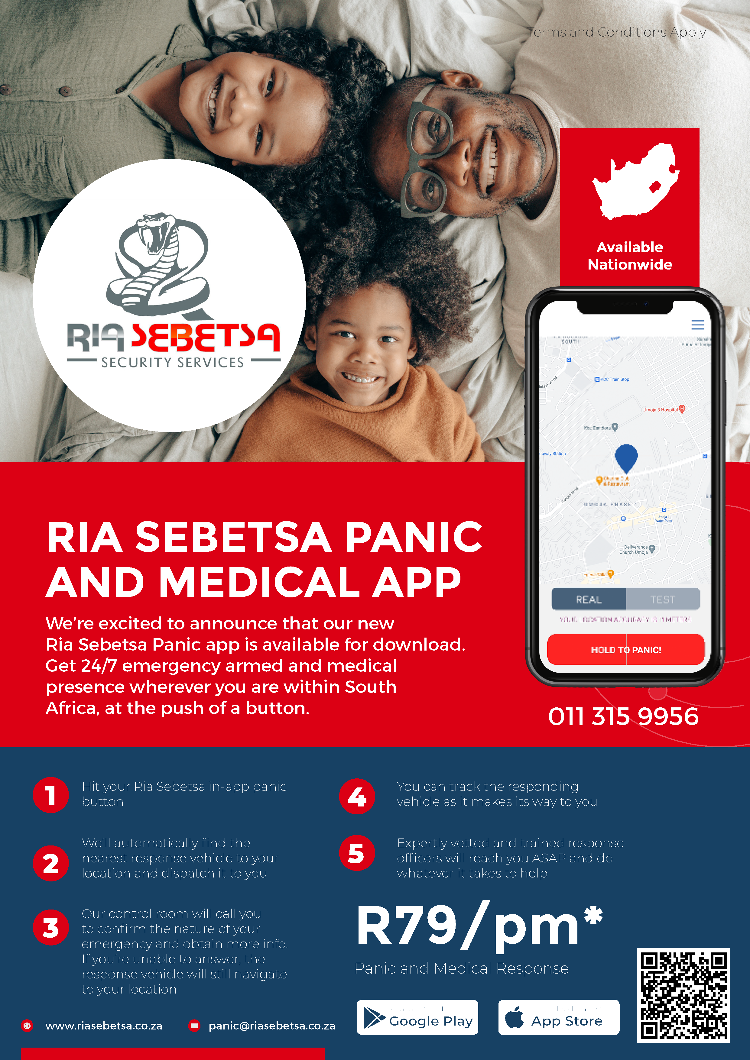 Ria Sebetsa Security Services provides, and continues to provide affordable security solutions nationally, specializing in Personalized Security service, which is both comprehensive and dedicated to the community we serve. We are recognized by and co-operate with all existing emergency services which include but not limited; South African Police Services, Fire Department & Emergency Services and other recognized crisis centres. Ria Sebetsa Security Services is accredited and affiliated with PSIRA. For your security, don’t settle for less go for the best!Ria Sebetsa Security, in its commitment to combat crime has joined the SAPS in the Midrand precinct. In taking on this responsibility, we have been awarded direct link to the Joint Operations Centre, affording us the opportunity to work closely with the community to rid the area of criminal activity. We are visible in active patrols in the communities we serve by conducting regular vehicle and on-going foot patrols in combating crime and deterring criminals.